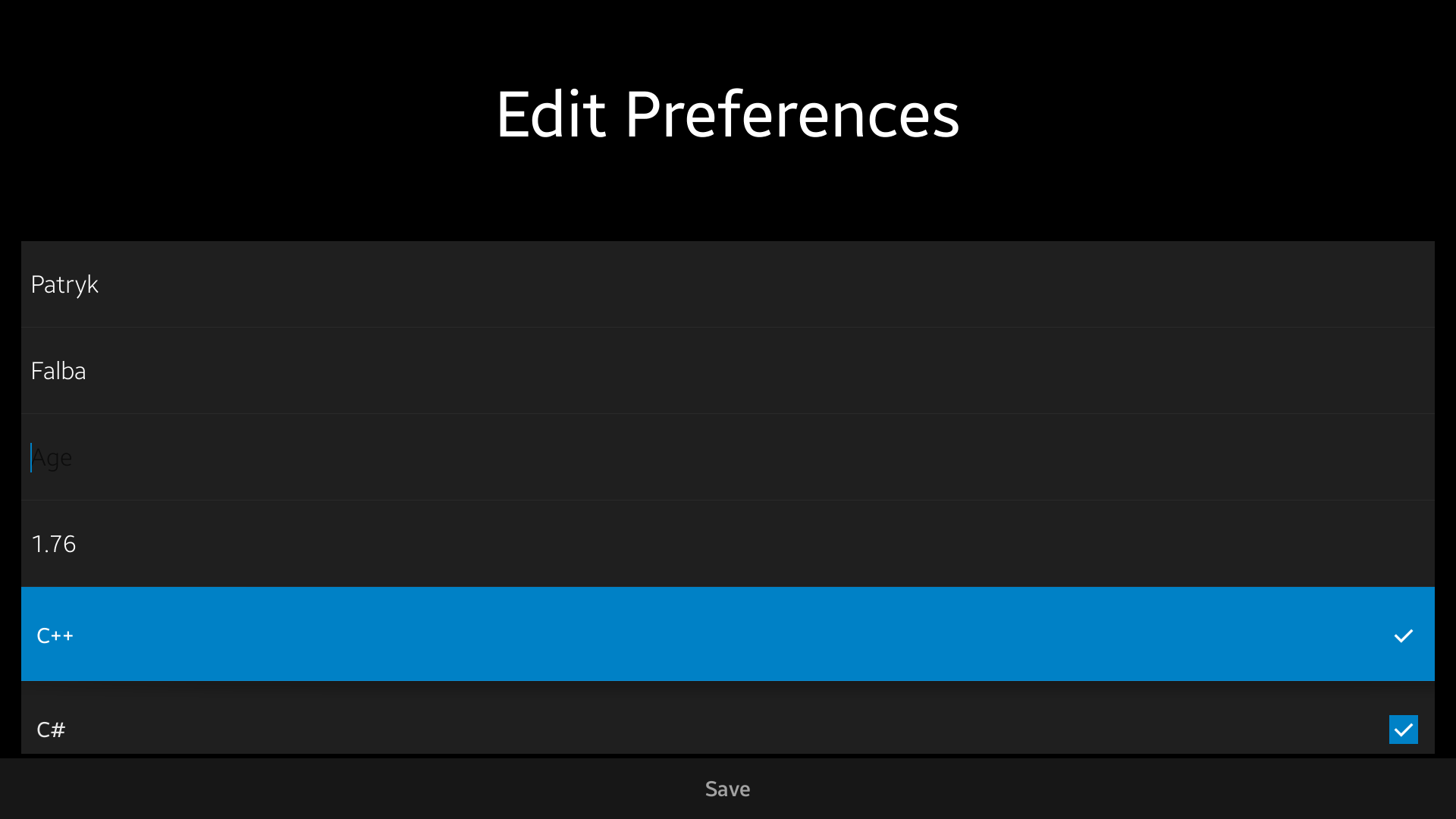 This sample application demonstrates how to use Tizen.Applications.Preference and how to create circular UI using Tizen.Wearable.CircularUI. |