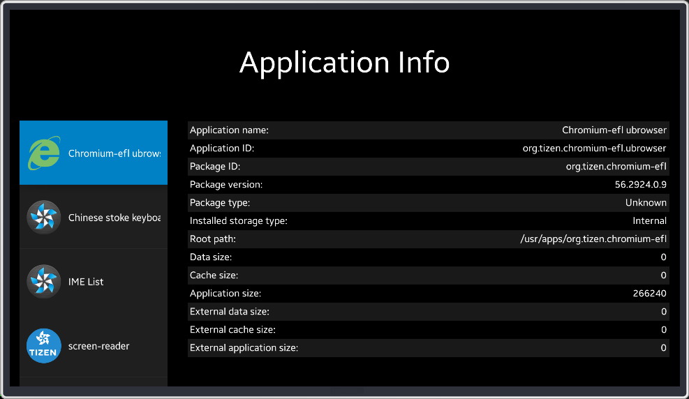 This sample application demonstrates how to obtain information about installed applications using Tizen.Applications. |