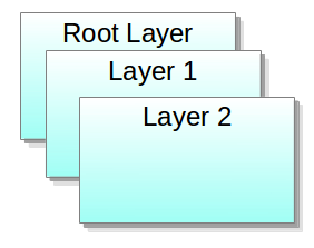 A layer is a transparent sheet upon which shapes are placed. It supports sub layers within layers to any desired depth. Layers provide a mechanism for overlaying groups of views on top of each other. Layers can also clip their contents, to exclude any content outside a user defined area.