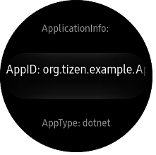 This sample application demonstrates how to launch an application, get a result for the launch request, and create circular UI using Tizen.Wearable.CircularUI. When you press Launch, the AppInformation sample application will be launched. Prerequisites This application uses Tizen.Applications. In addition, there are similar native and web sample applications. |